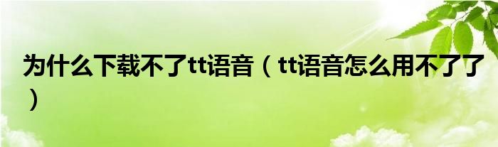 大家好,跳跳为你解答以上问题。为什么下载不了tt语音,tt语音怎么用不了了这个问题很多人还不知道,现在让我们一起来看看吧!