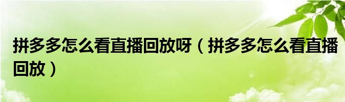 大家好,跳跳为你解答以上问题。拼多多怎么看直播回放呀,拼多多怎么看直播回放这个问题很多人还不知道,现在让我们一起来看看吧!