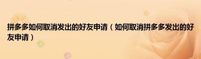 大家好,跳跳为你解答以上问题。拼多多如何取消发出的好友申请,如何取消拼多多发出的好友申请这个问题很多人还不知道,现在让我们一起来看看吧!