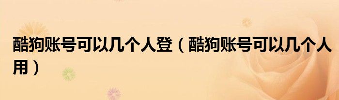 大家好,跳跳为你解答以上问题。酷狗账号可以几个人登,酷狗账号可以几个人用这个问题很多人还不知道,现在让我们一起来看看吧!