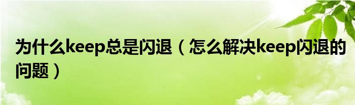 大家好,跳跳为你解答以上问题。为什么keep总是闪退,怎么解决keep闪退的问题这个问题很多人还不知道,现在让我们一起来看看吧!