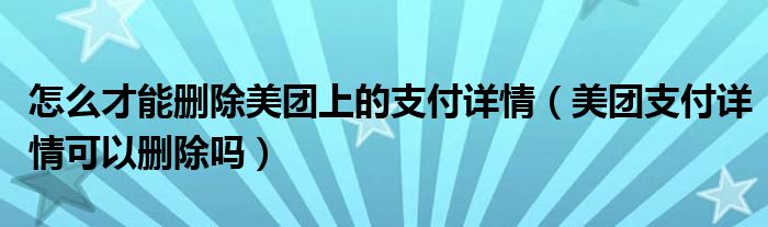 怎么才能删除美团上的支付详情(美团支付详情可以删除吗)