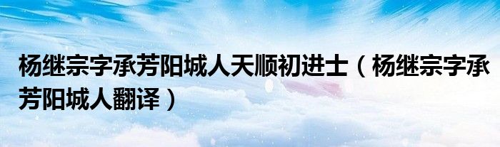 关于杨继宗字承芳阳城人天顺初进士,杨继宗字承芳阳城人翻译这个很多人还不知道,今天菲菲来为大家解答以上的问题,现在让我们一起来看看吧!