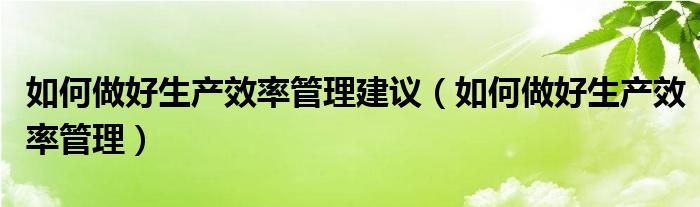 关于如何做好生产效率管理建议,如何做好生产效率管理这个很多人还不知道,今天菲菲来为大家解答以上的问题,现在让我们一起来看看吧!