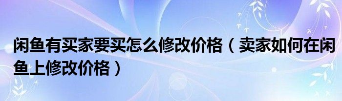 大家好,熊熊为你解答以上问题。闲鱼有买家要买怎么修改价格,卖家如何在闲鱼上修改价格这个很多人还不知道,现在让我们一起来看看吧!