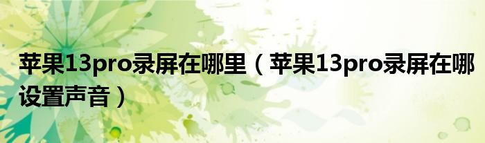 大家好,熊熊为你解答以上问题。苹果13pro录屏在哪里,苹果13pro录屏在哪设置声音这个很多人还不知道,现在让我们一起来看看吧!