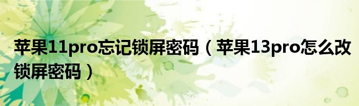 大家好,熊熊为你解答以上问题。苹果11pro忘记锁屏密码,苹果13pro怎么改锁屏密码这个很多人还不知道,现在让我们一起来看看吧!