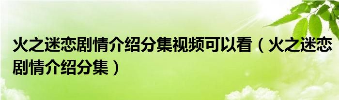 大家好,小晋来为大家解答以下问题,关于火之迷恋剧情介绍分集视频可以看,火之迷恋剧情介绍分集很多人还不知道,今天让我们一起来看看吧!