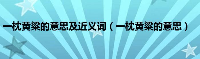 大家好,小晋来为大家解答以下问题,关于一枕黄粱的意思及近义词,一枕黄粱的意思很多人还不知道,今天让我们一起来看看吧!