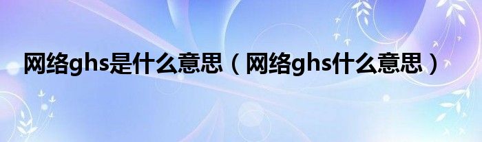 大家好,小晋来为大家解答以下问题,关于网络ghs是什么意思,网络ghs什么意思很多人还不知道,今天让我们一起来看看吧!