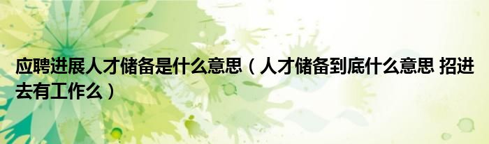 关于应聘进展人才储备是什么意思,人才储备到底什么意思 招进去有工作么这个很多人还不知道,今天菲菲来为大家解答以上的问题,现在让我们一起来看看吧!