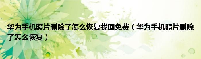 大家好,小晋来为大家解答以下问题,关于华为手机照片删除了怎么恢复找回免费,华为手机照片删除了怎么恢复很多人还不知道,今天让我们一起来看看吧!