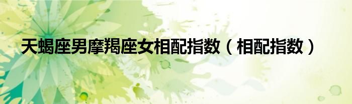 关于天蝎座男摩羯座女相配指数,相配指数这个很多人还不知道,今天菲菲来为大家解答以上的问题,现在让我们一起来看看吧!