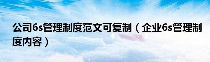 关于公司6s管理制度范文可复制,企业6s管理制度内容这个很多人还不知道,今天菲菲来为大家解答以上的问题,现在让我们一起来看看吧!