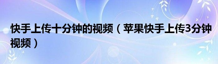 快手上传十分钟的视频(苹果快手上传3分钟视频)
