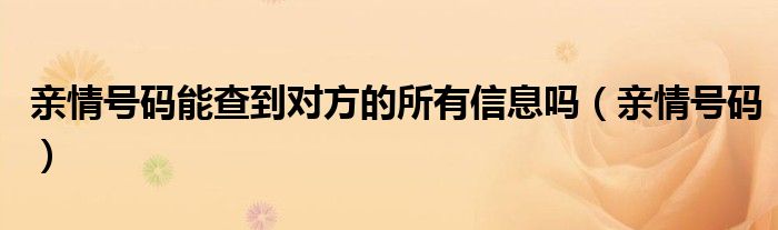 大家好,小晋来为大家解答以下问题,关于亲情号码能查到对方的所有信息吗,亲情号码很多人还不知道,今天让我们一起来看看吧!