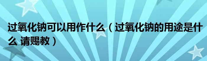 关于过氧化钠可以用作什么,过氧化钠的用途是什么 请赐教这个很多人还不知道,今天菲菲来为大家解答以上的问题,现在让我们一起来看看吧!