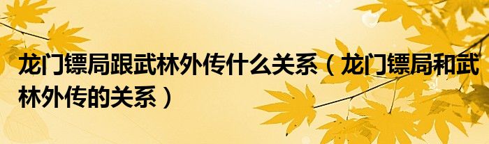 大家好,小晋来为大家解答以下问题,关于龙门镖局跟武林外传什么关系,龙门镖局和武林外传的关系很多人还不知道,今天让我们一起来看看吧!