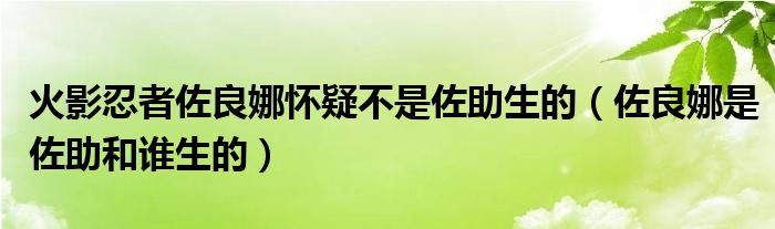 大家好,小晋来为大家解答以下问题,关于火影忍者佐良娜怀疑不是佐助生的,佐良娜是佐助和谁生的很多人还不知道,今天让我们一起来看看吧!
