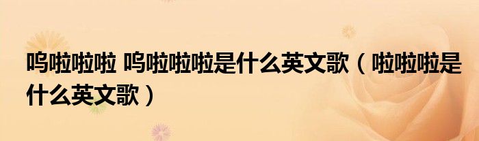 关于呜啦啦啦 呜啦啦啦是什么英文歌,啦啦啦是什么英文歌这个很多人还不知道,今天菲菲来为大家解答以上的问题,现在让我们一起来看看吧!