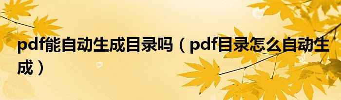 pdf能自动生成目录吗(pdf目录怎么自动生成)