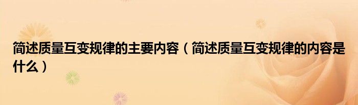关于简述质量互变规律的主要内容,简述质量互变规律的内容是什么这个很多人还不知道,今天菲菲来为大家解答以上的问题,现在让我们一起来看看吧!
