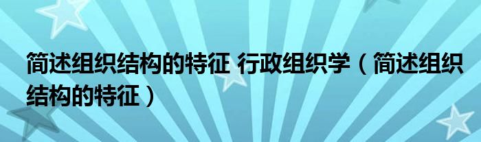 关于简述组织结构的特征 行政组织学,简述组织结构的特征这个很多人还不知道,今天菲菲来为大家解答以上的问题,现在让我们一起来看看吧!