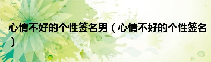 大家好,来宝来为大家解答以下问题,心情不好的个性签名男,心情不好的个性签名很多人还不知道,今天让我们一起来看看吧!