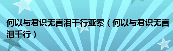 何以与君识无言泪千行亚索(何以与君识无言泪千行)