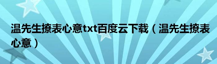大家好,小晋来为大家解答以下问题,关于温先生撩表心意txt百度云下载,温先生撩表心意很多人还不知道,今天让我们一起来看看吧!