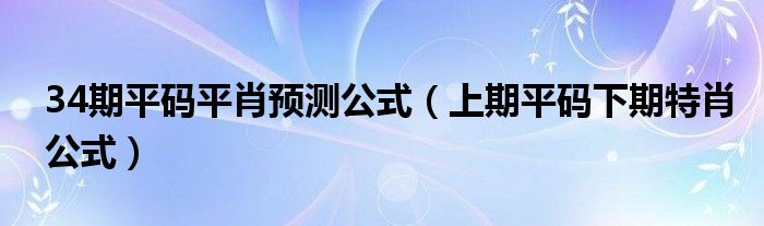 关于34期平码平肖预测公式,上期平码下期特肖公式这个很多人还不知道,今天菲菲来为大家解答以上的问题,现在让我们一起来看看吧!