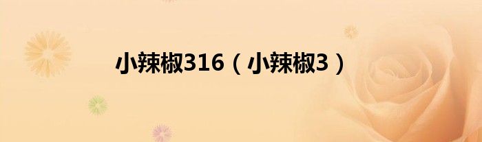 大家好,来宝来为大家解答以下问题,小辣椒316,小辣椒3很多人还不知道,今天让我们一起来看看吧!
