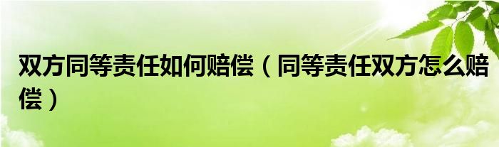 关于双方同等责任如何赔偿,同等责任双方怎么赔偿这个很多人还不知道,今天菲菲来为大家解答以上的问题,现在让我们一起来看看吧!
