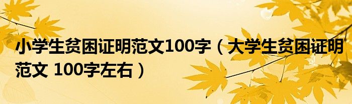 关于小学生贫困证明范文100字,大学生贫困证明范文 100字左右这个很多人还不知道,今天菲菲来为大家解答以上的问题,现在让我们一起来看看吧!