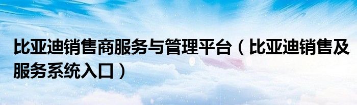 比亚迪销售商服务与管理平台(比亚迪销售及服务系统入口)