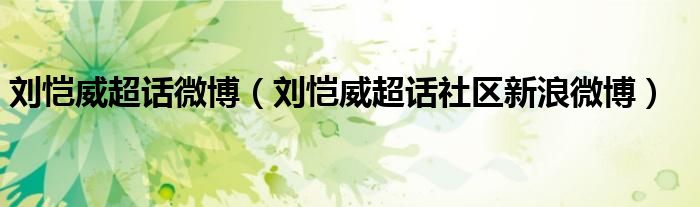 刘恺威超话微博(刘恺威超话社区新浪微博)