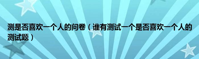 关于测是否喜欢一个人的问卷,谁有测试一个是否喜欢一个人的测试题这个很多人还不知道,今天菲菲来为大家解答以上的问题,现在让我们一起来看看吧!
