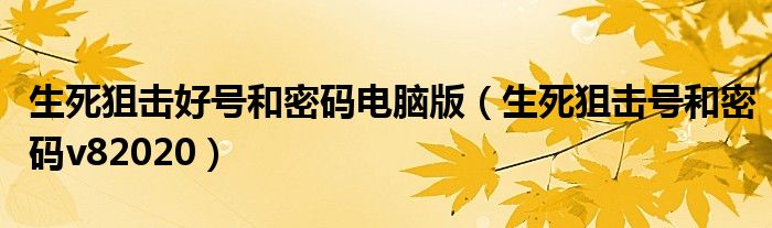 生死狙击好号和密码电脑版(生死狙击号和密码v82020)