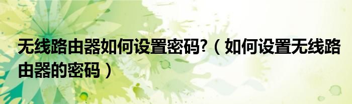 手机如何设置路由器密码?