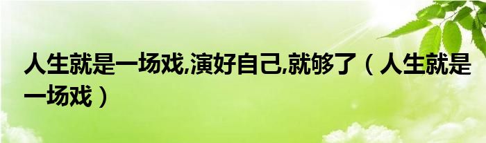 大家好,小晋来为大家解答以下问题,关于人生就是一场戏,演好自己,就够了,人生就是一场戏很多人还不知道,今天让我们一起来看看吧!