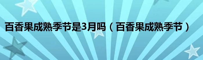 关于百香果成熟季节是3月吗,百香果成熟季节这个很多人还不知道,今天菲菲来为大家解答以上的问题,现在让我们一起来看看吧!
