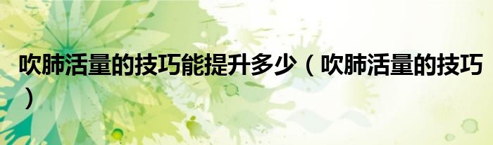 大家好,小晋来为大家解答以下问题,关于吹肺活量的技巧能提升多少,吹肺活量的技巧很多人还不知道,今天让我们一起来看看吧!