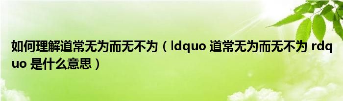 关于如何理解道常无为而无不为,ldquo 道常无为而无不为 rdquo 是什么意思这个很多人还不知道,今天菲菲来为大家解答以上的问题,现在让我们一起来看看吧!