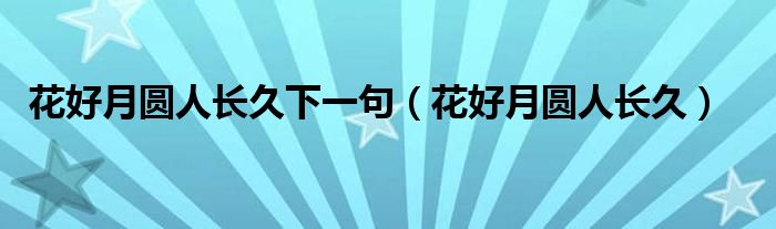 关于花好月圆人长久下一句,花好月圆人长久这个很多人还不知道,今天菲菲来为大家解答以上的问题,现在让我们一起来看看吧!