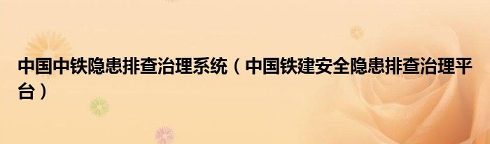 关于中国中铁隐患排查治理系统,中国铁建安全隐患排查治理平台这个很多人还不知道,今天菲菲来为大家解答以上的问题,现在让我们一起来看看吧!