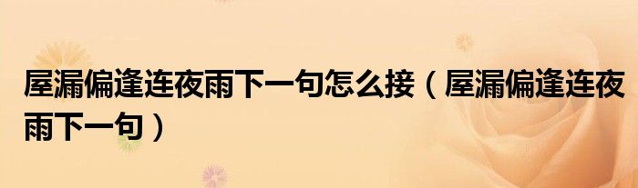 关于屋漏偏逢连夜雨下一句怎么接,屋漏偏逢连夜雨下一句这个很多人还不知道,今天菲菲来为大家解答以上的问题,现在让我们一起来看看吧!