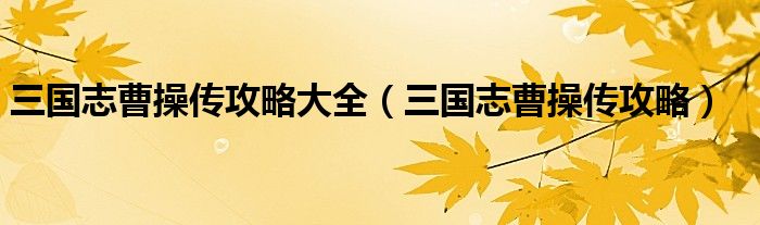大家好,小晋来为大家解答以下问题,关于三国志曹操传攻略大全,三国志曹操传攻略很多人还不知道,今天让我们一起来看看吧!