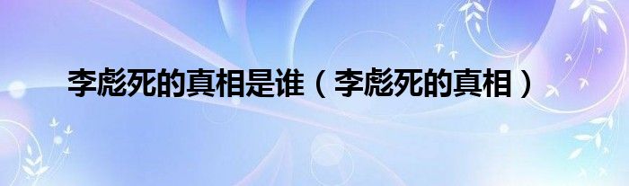 关于李彪死的真相是谁,李彪死的真相这个很多人还不知道,今天菲菲来为大家解答以上的问题,现在让我们一起来看看吧!