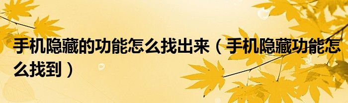 手机隐藏的功能怎么找出来(手机隐藏功能怎么找到)