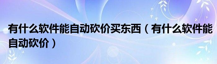 有什么软件能自动砍价买东西(有什么软件能自动砍价)